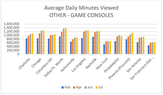 - Other (primarily Gaming Consoles) viewing of gaming devices plus devices that use the TV as a monitor