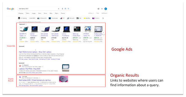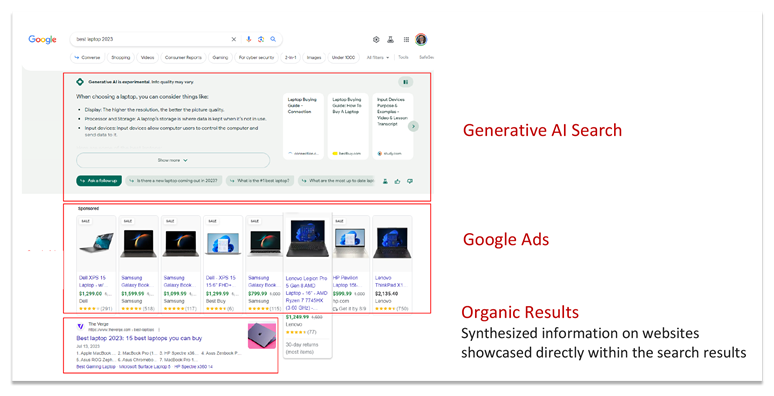 The screenshots below illustrate the differences between Google’s traditional results and Generative AI Search results:
