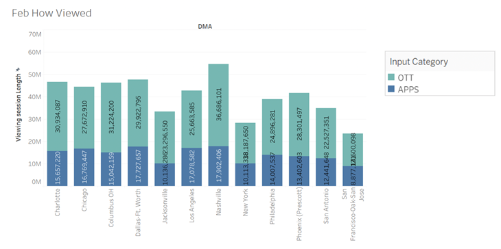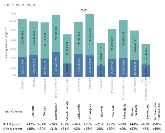 Both OTT and App viewing offer critical opportunities for delivery of addressable advertising to targeted segments, audiences, and households. But usage and growth are by no means uniform across the country, with different cities showing significantly different growth rates.