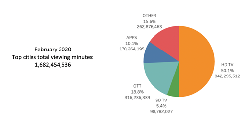 For OTT, while sports were on-air, viewing rankers were primarily dominated by sports content in all cities.
