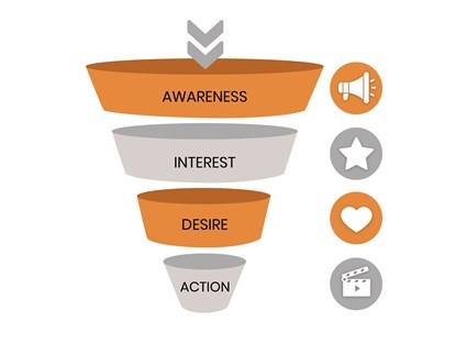 The upper funnel usually encompasses the awareness stage, although some would include the interest stage in upper funnel marketing to help draw more users toward the lower stages of desire and action. Keep in mind that all of the stages have the main goal to drive customers to conversions, by focusing on a specific action or purpose.
